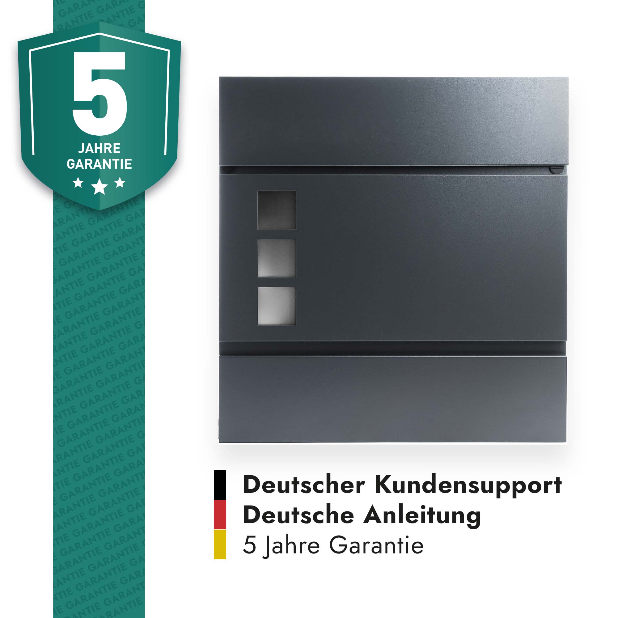 - Postkasten in Nordischem Design – Geradlinige Form mit eleganter Oberfläche in Anthrazit (RAL7016) – mit drei integrierten Lichtfenstern