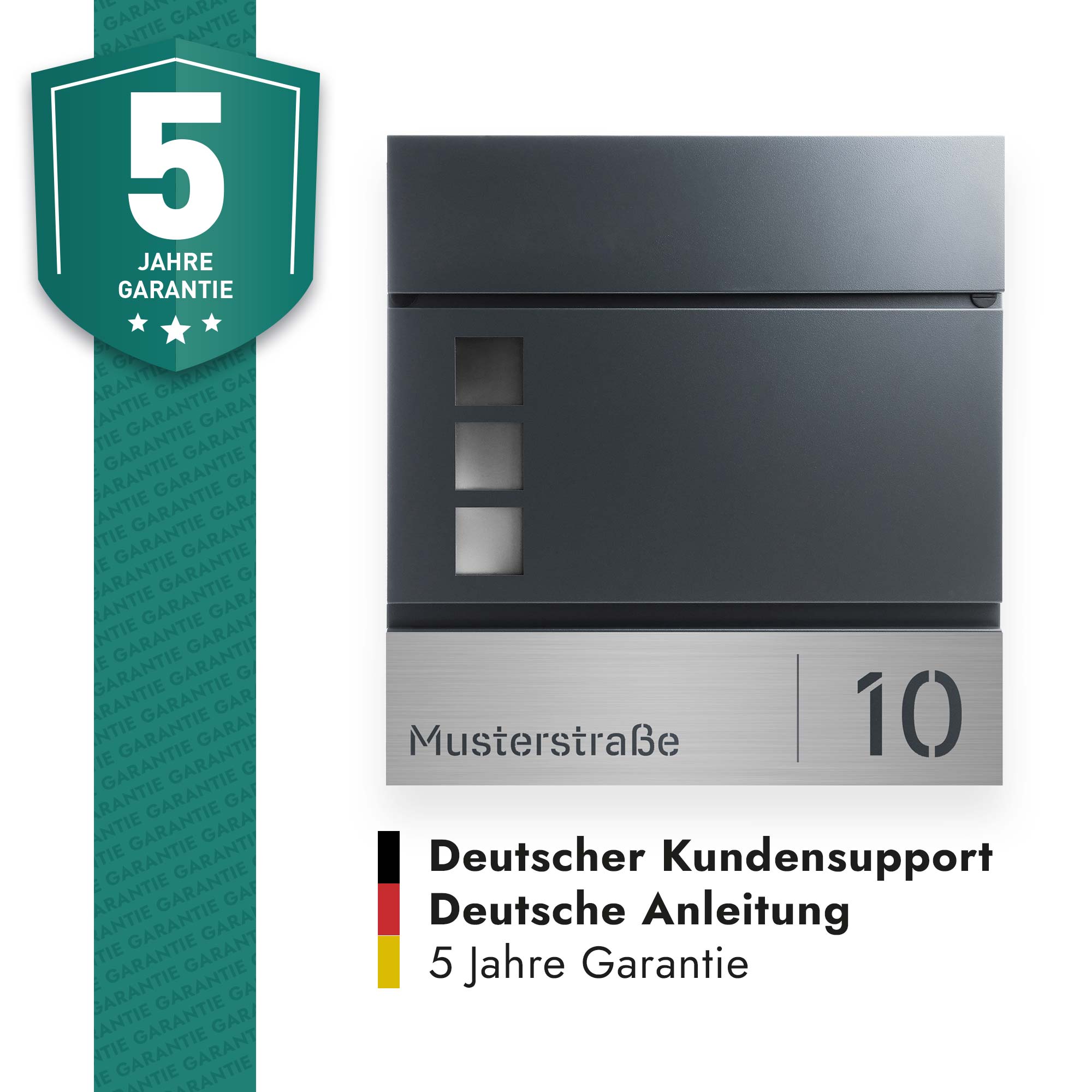- Postkasten im Nordischen Design – Minimalistisch elegant in Anthrazit RAL7016 mit drei Lichtfenstern und klarer Linienführung