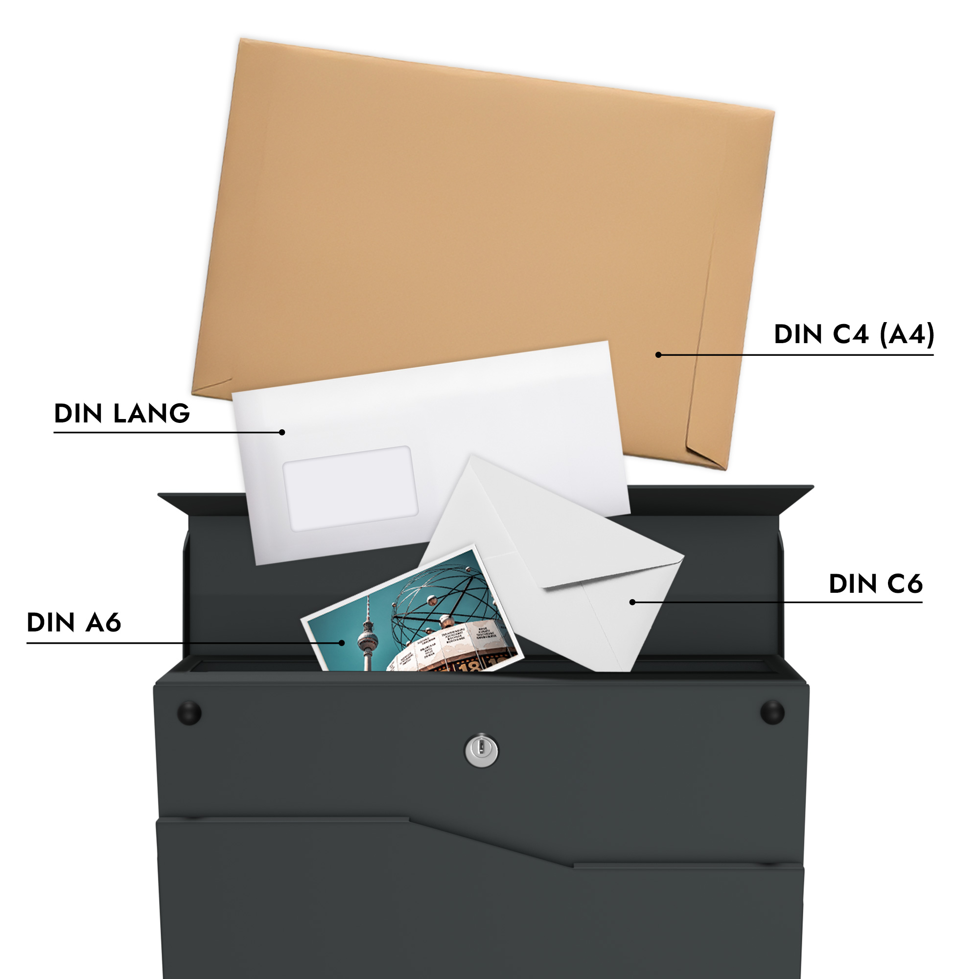 - Inklusive Zeitungsfach – Das integrierte Zeitungsfach (Zeitungsrolle) mit großer Einwurfklappe bietet Platz für Magazine und Zeitungen, sodass Ihre Post jederzeit ordentlich und trocken bleibt