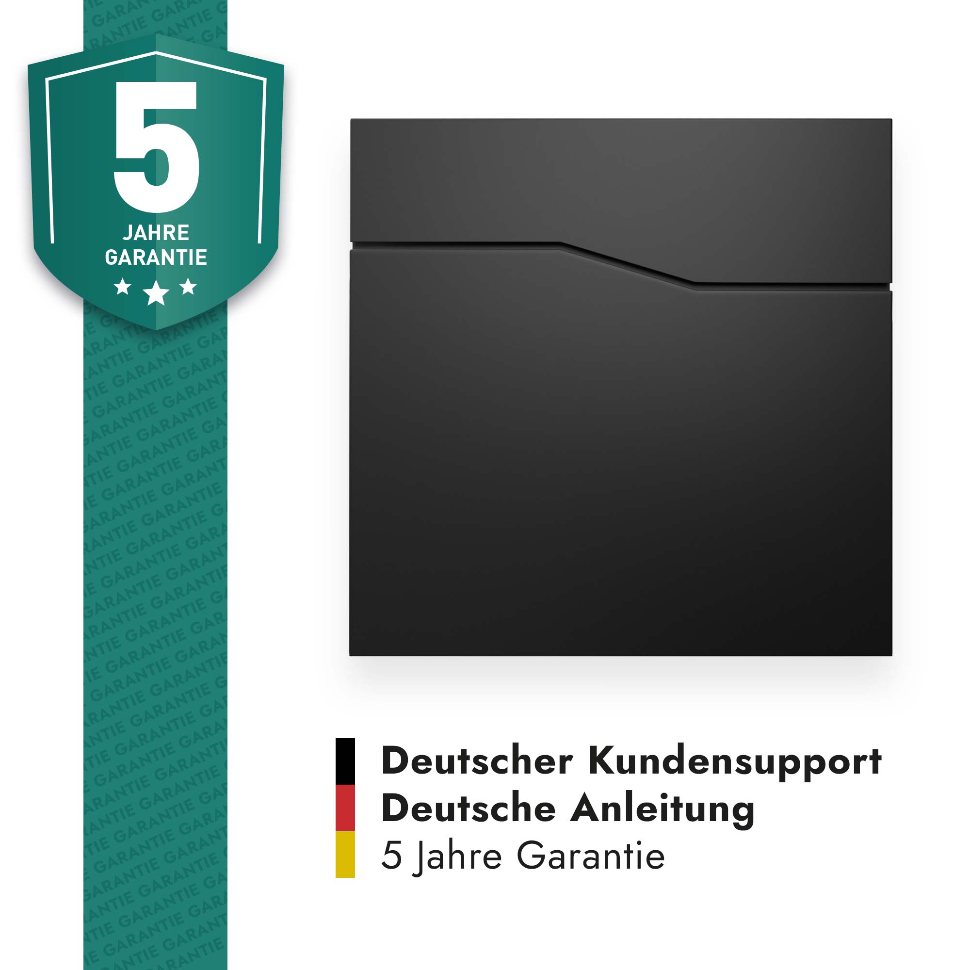 - Nordisches Design – Der schwarze RAL9005 Briefkasten mit gezackter Linie fügt sich harmonisch in jede Hausfassade ein und bietet ein elegantes und zeitloses Design