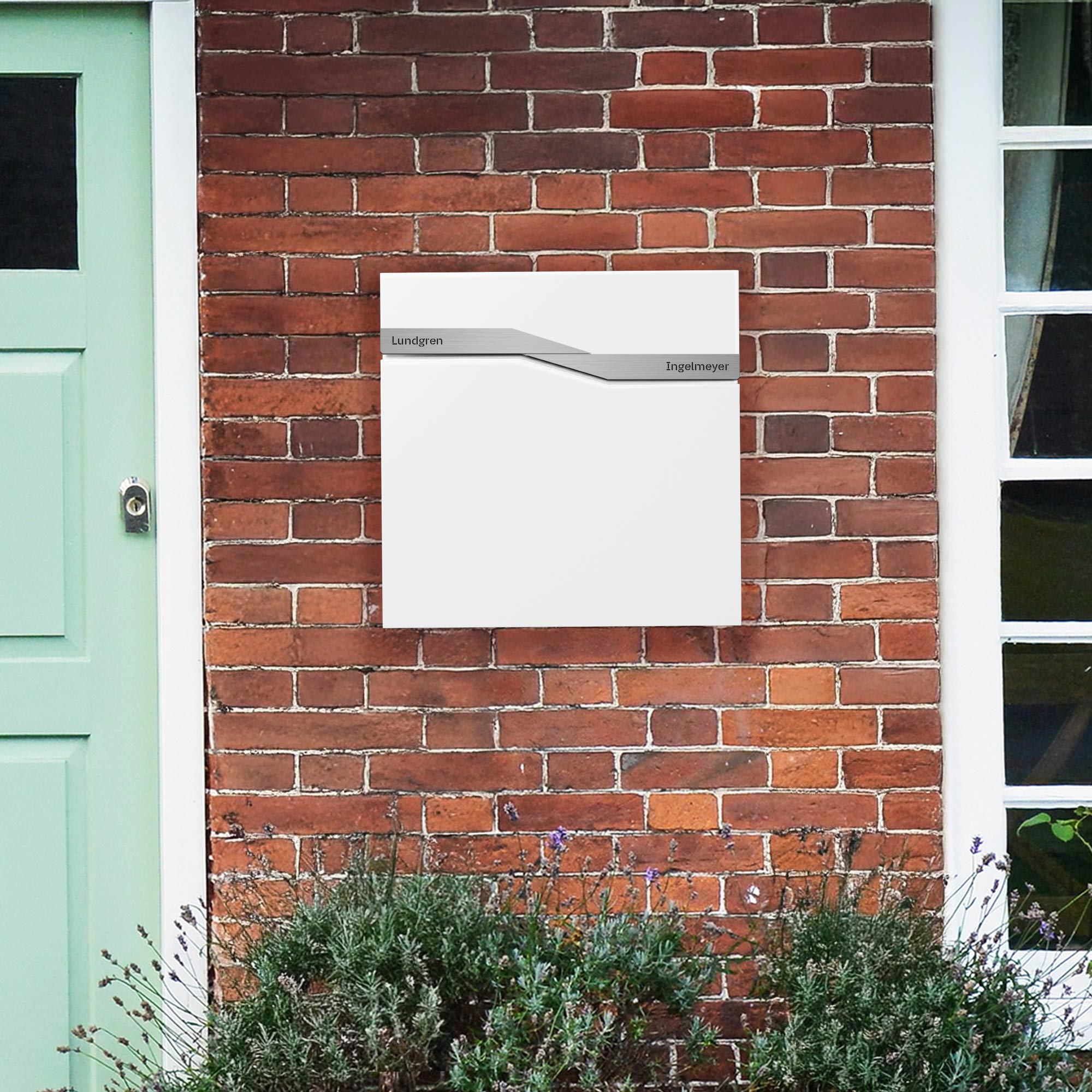 Briefkasten Trelleborg Weiß (RAL9016) Zinkstahl mit Zeitungsfach - personalisiert mit 2 Namensschildern als Gravur