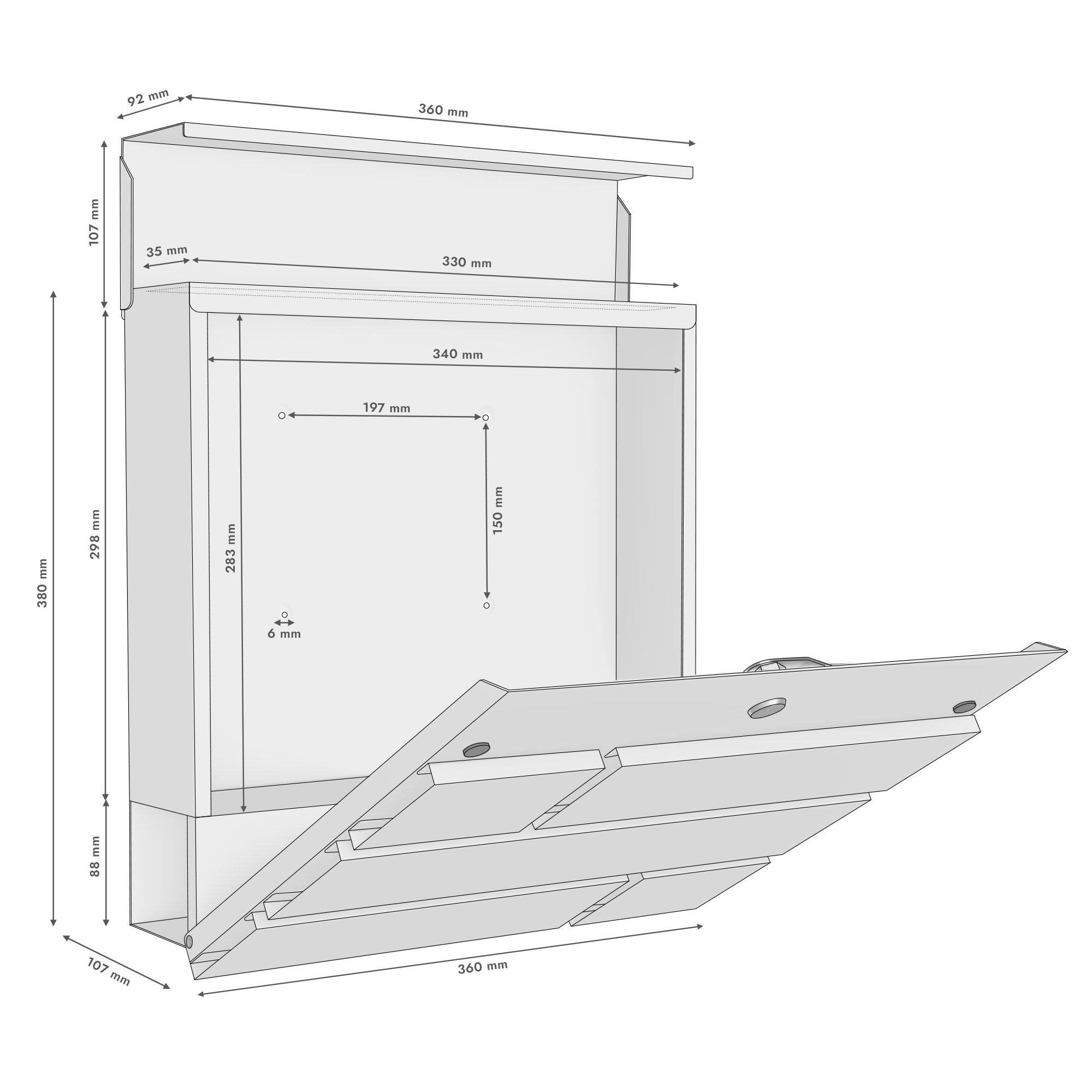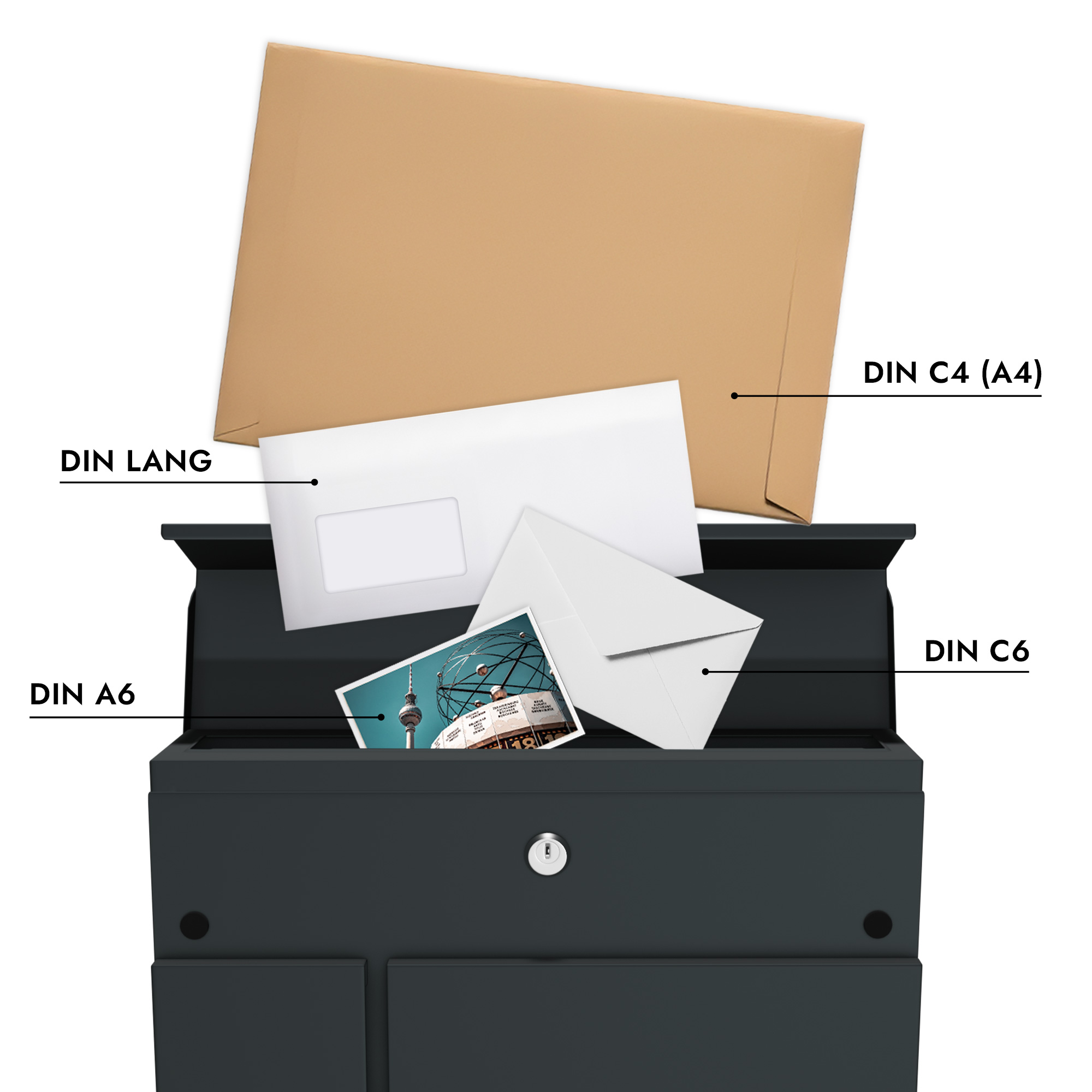 - Postkasten mit funktionaler Ausstattung – Inklusive eines integrierten Zeitungsfachs (Zeitungsrolle) für trockene und ordentliche Aufbewahrung sowie abschließbare Postbox mit zwei Schlüsseln