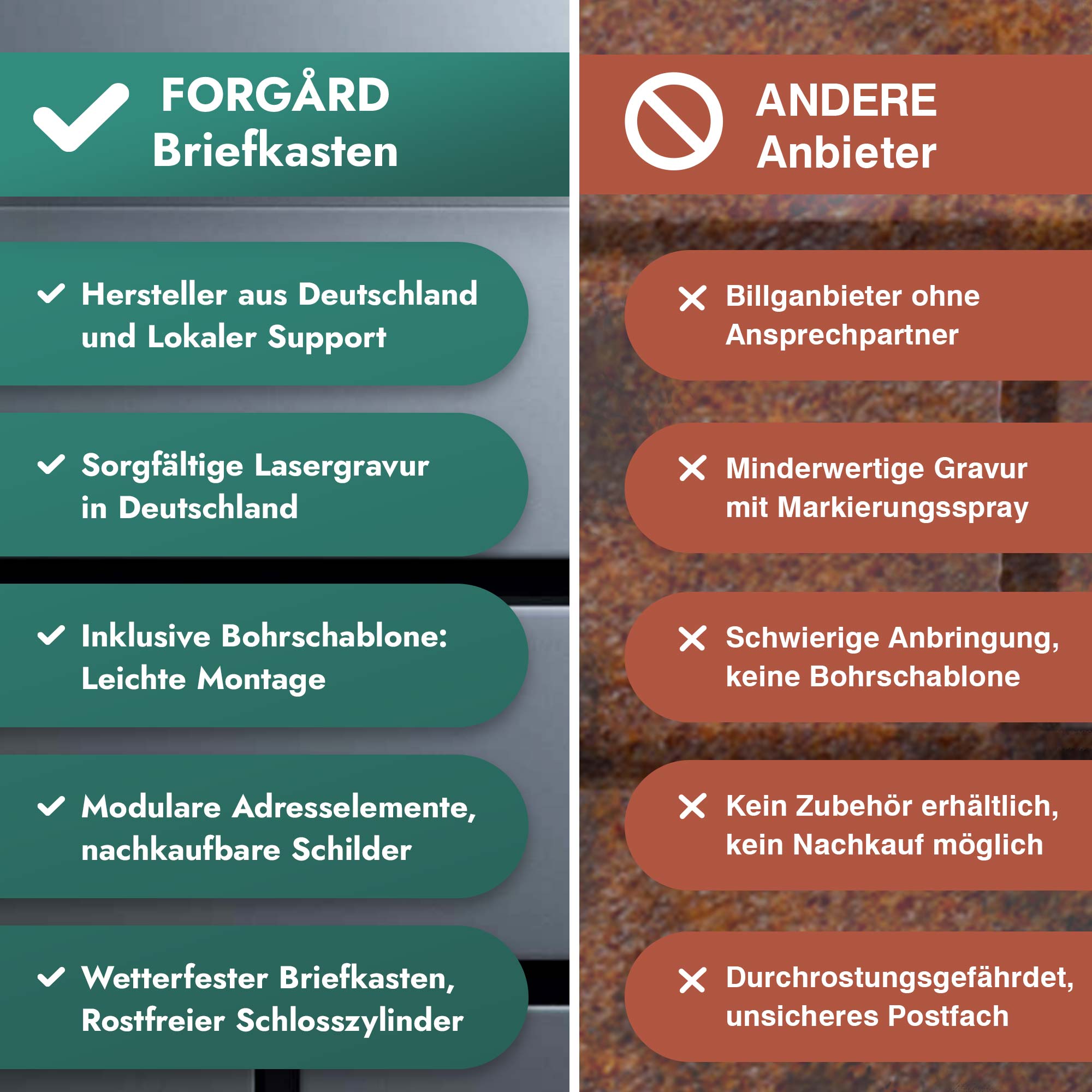 - Personalisierter Briefkasten – Inklusive zwei silberfarbener, selbstklebender Plaketten, graviert mit Ihrer gewünschten Adresse – Straße und Hausnummer
