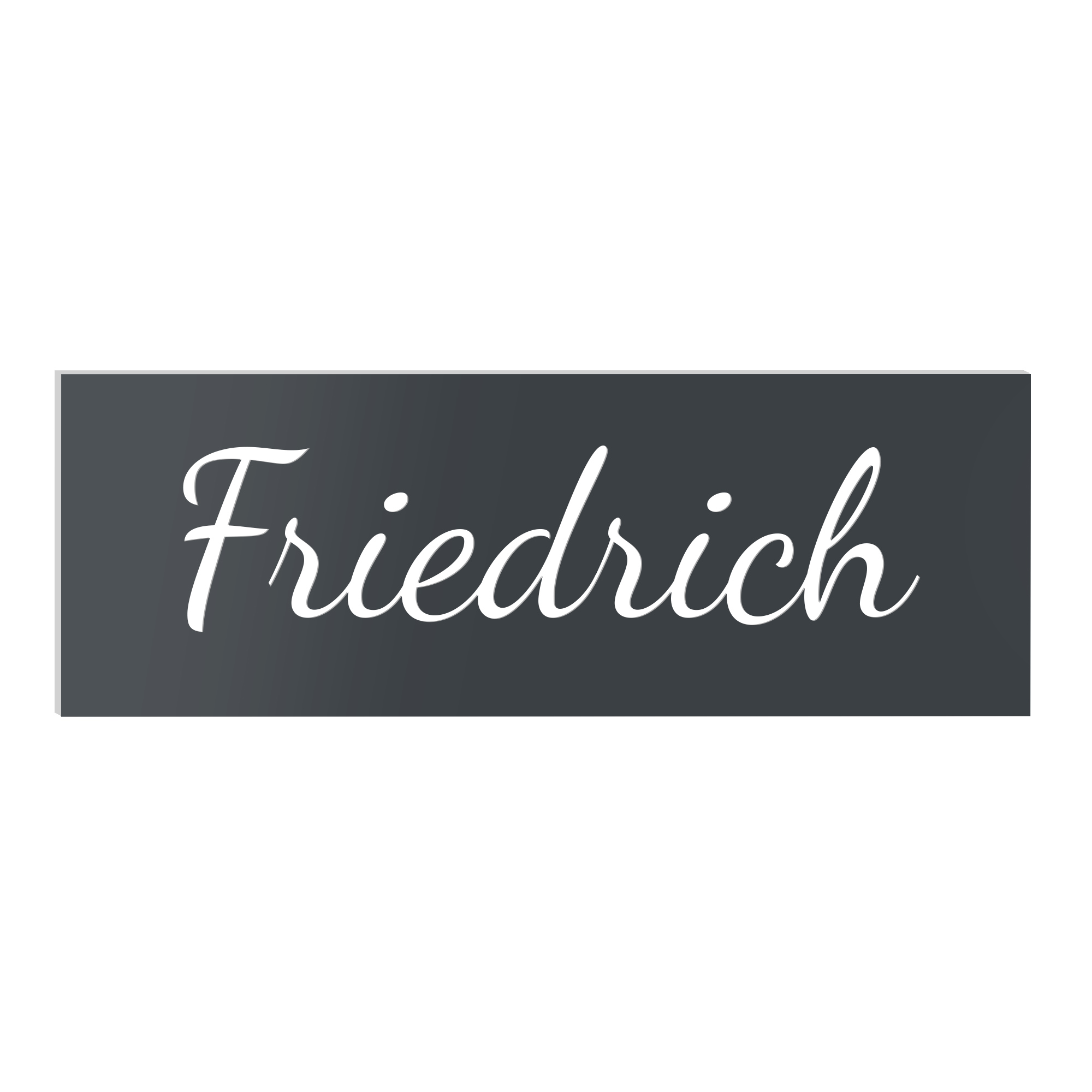 - Moderne Optik – Anthrazitgraues Schild mit kontrastreicher weißer Gravur