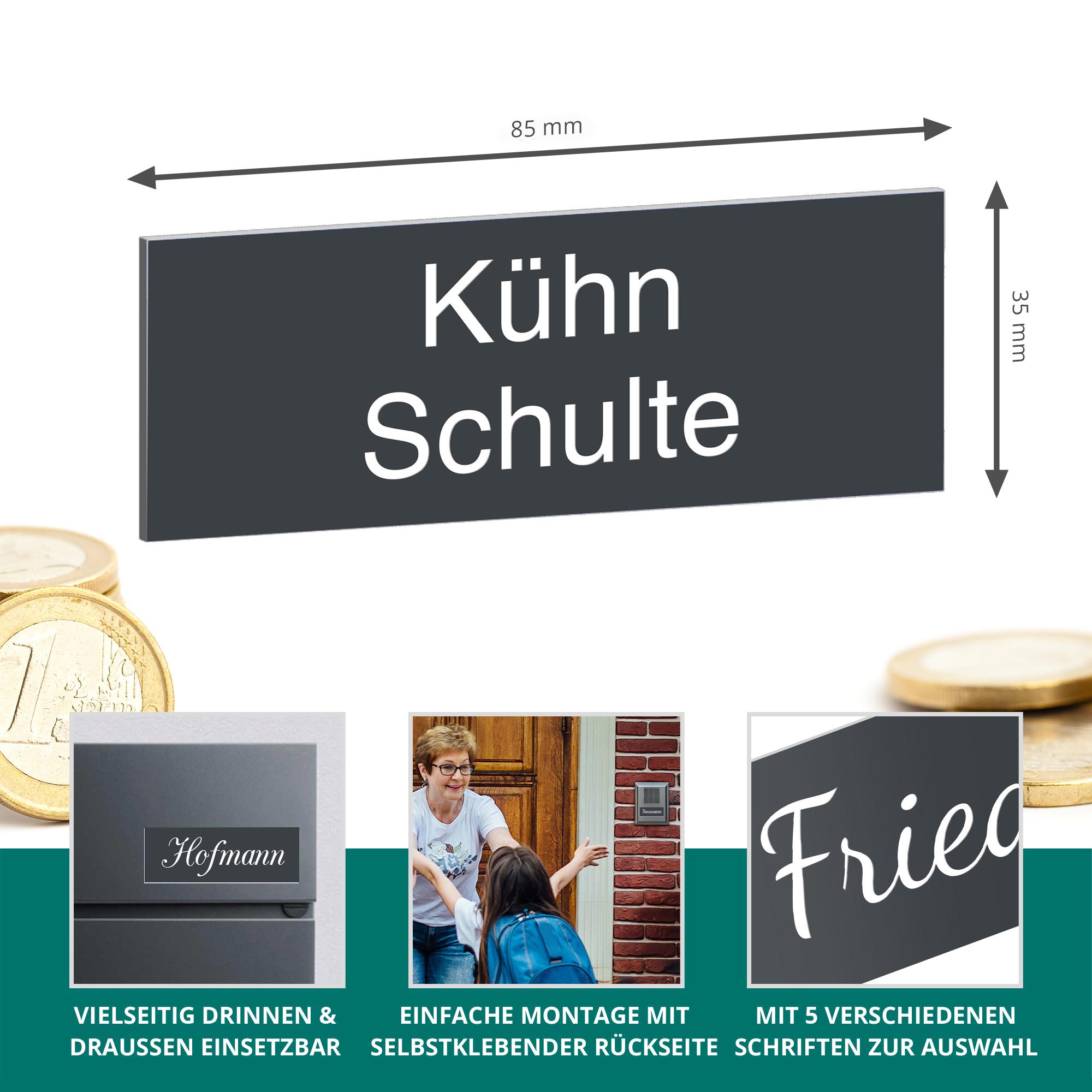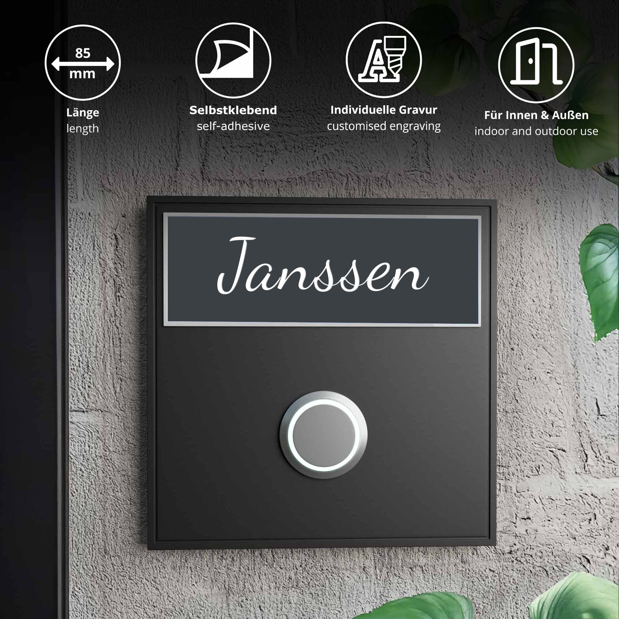 Klingelschild Kongsberg Anthrazitgrau mit Gravur - personalisiertes Türschild 85x30 mm
