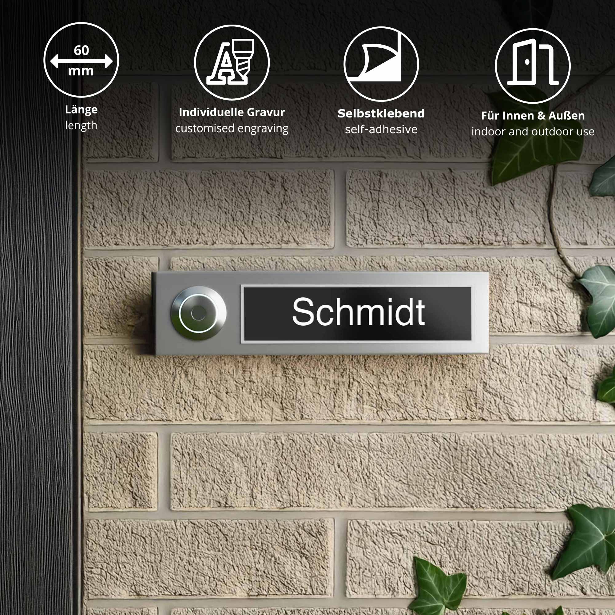 Klingelschild Kongsberg Schwarz mit Gravur - personalisiertes Türschild 60x15mm