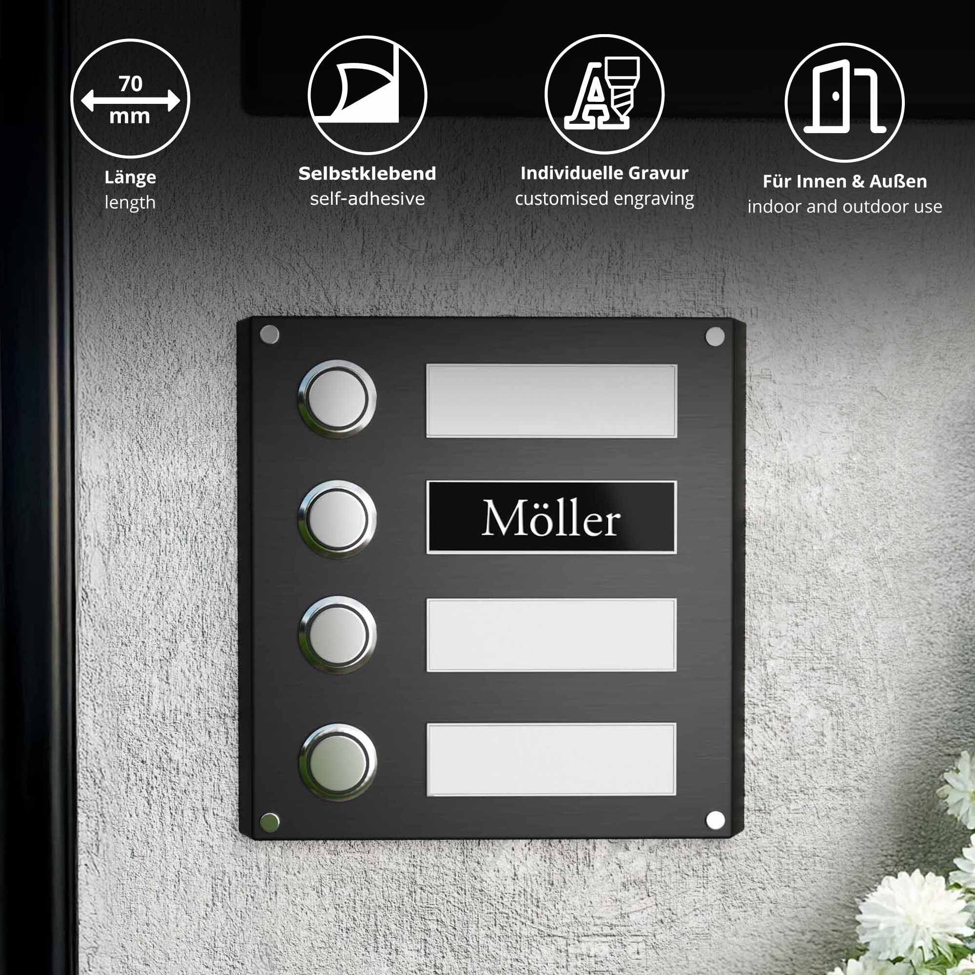 Klingelschild Kongsberg Schwarz mit Gravur - personalisiertes Türschild 70x20 mm