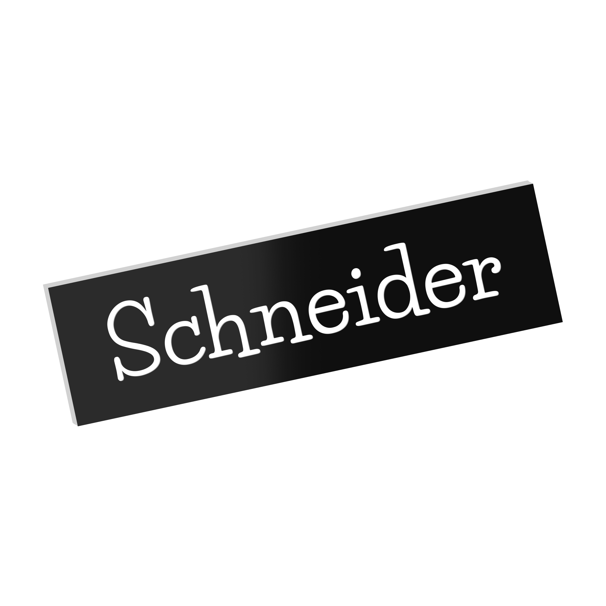 Das Klingelschild Kongsberg in Tiefschwarz mit weißer Gravur überzeugt durch starken Kontrast und eleganten Minimalismus. Mit einer Größe von 70x20 mm ist das personalisierte Namensschild ideal für den Einsatz an Briefkästen oder Haustüren – unauffällig im Format, aber gut lesbar. Gefertigt aus hochwertigem 2-Schicht-Acryl ist das Türschild UV-beständig, witterungsfest und für den Innen- und Außenbereich konzipiert. Die selbstklebende Rückseite ermöglicht eine einfache, bohrfreie Montage auf glatten Untergründen. Gestalten Sie das Briefkastenschild individuell mit Name, Hausnummer oder beidem – optional in ein oder zwei Zeilen, abgerundete Ecken wählbar. Mit fünf modernen Schriftarten und optionalem "Keine Werbung"-Schild wird das Namensschild zum stilvollen Blickfang an Ihrem Eingangsbereich.