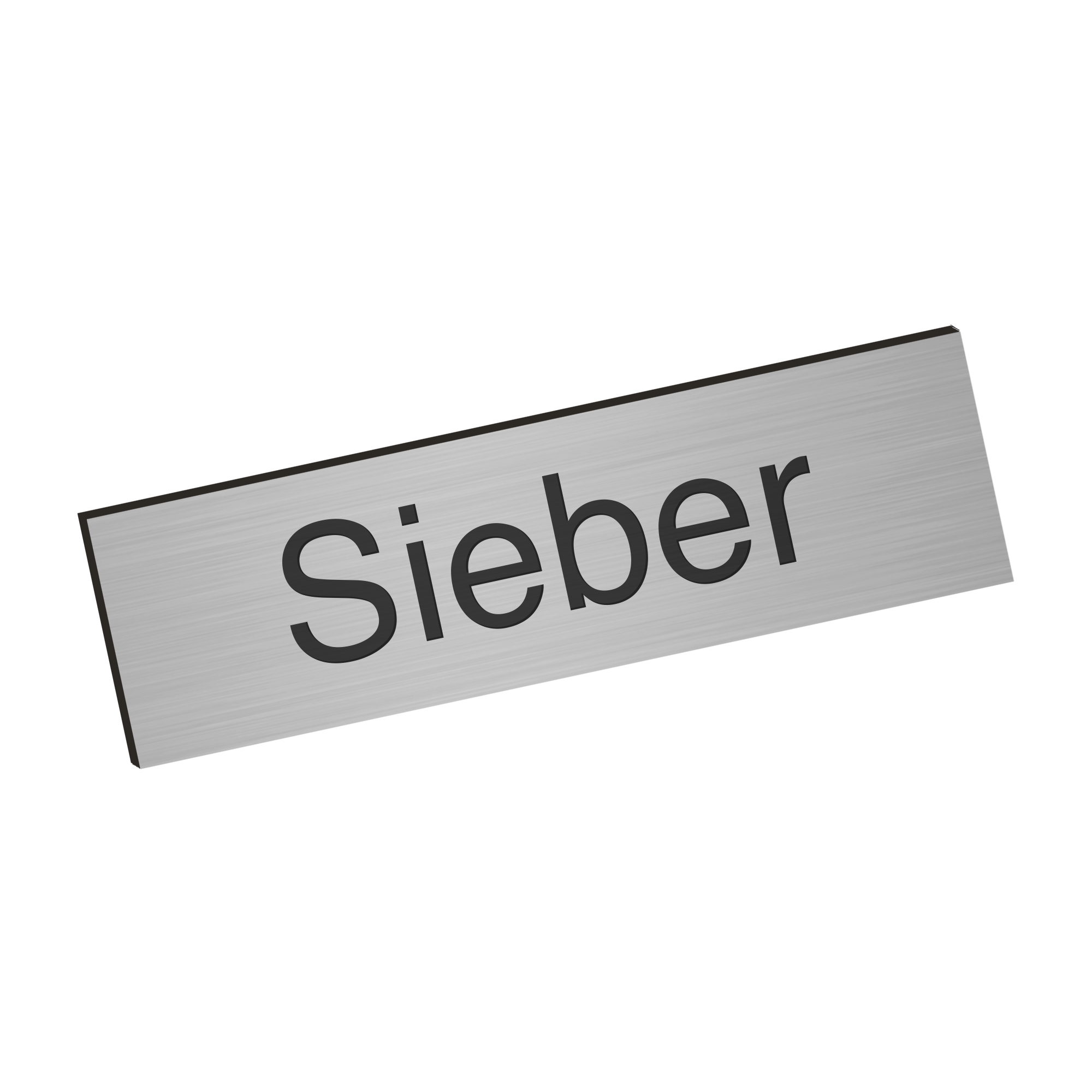 - Klares Design – Silberfarbenes Schild mit schwarzer Gravur – modern & elegant