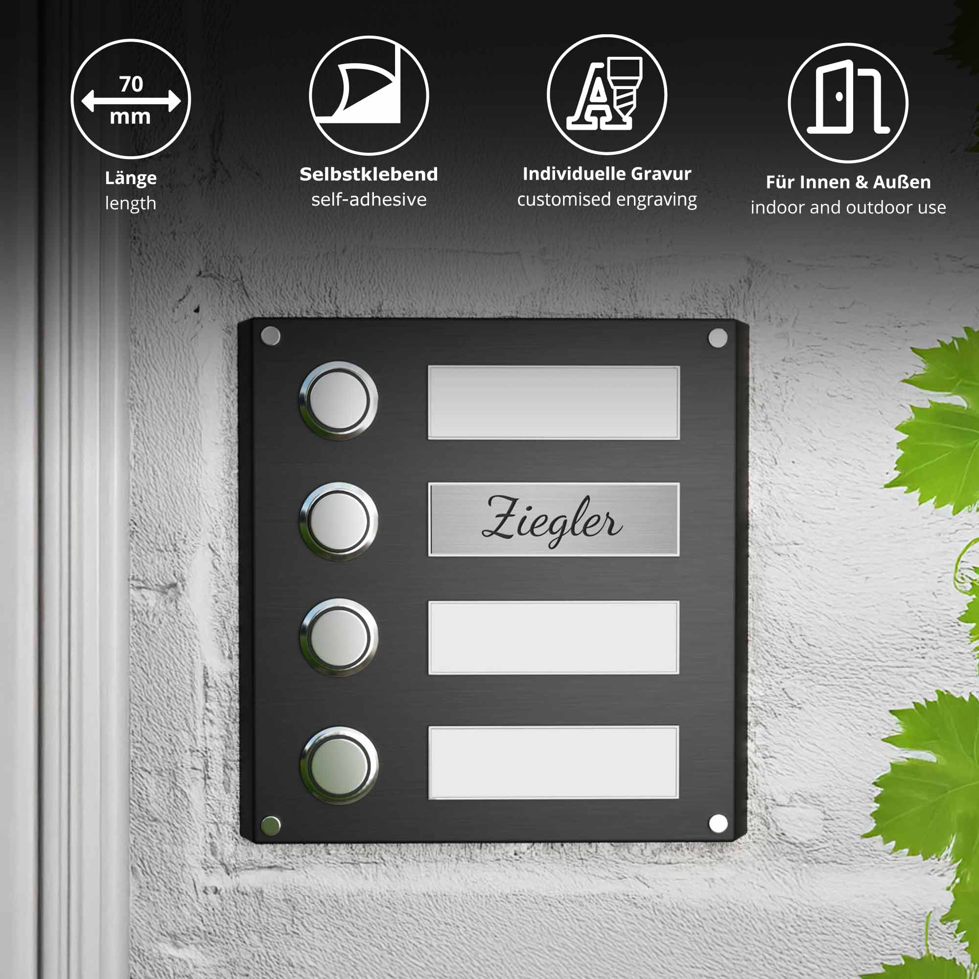 Klingelschild Kongsberg Silber mit Gravur - personalisiertes Türschild 70x20 mm