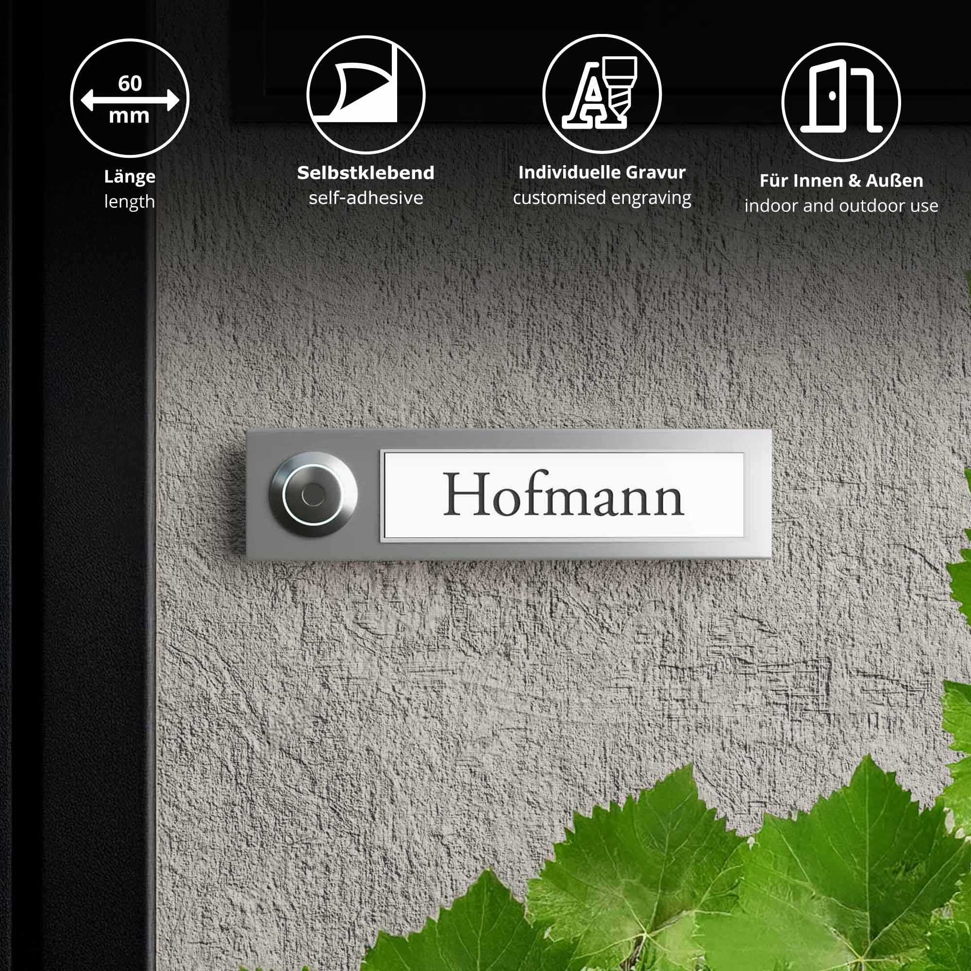 Klingelschild Kongsberg Weiß mit Gravur - personalisiertes Türschild 60x15 mm