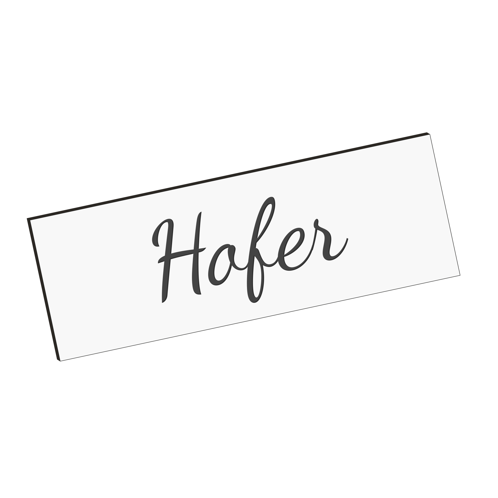 Das Klingelschild Kongsberg in elegantem Weiß mit schwarzer Gravur überzeugt durch modernes Design und hervorragende Lesbarkeit. Mit der großzügigen Fläche von 85 × 30 mm eignet sich das Schild ideal für Eingangsbereich oder Briefkasten und bietet Platz für eine oder zwei Gravurzeilen. Das langlebige 2-Schicht-Acrylmaterial ist wetterfest und UV-beständig – perfekt für den Einsatz im Freien. Die Gravur wird dauerhaft in die obere Schicht eingearbeitet und wirkt besonders kontrastreich auf dem weißen Grund. Durch die selbstklebende Rückseite lässt sich das Namensschild einfach montieren – ganz ohne Bohren oder Schrauben. Wählen Sie zwischen fünf Schriftarten, optional abgerundeten Ecken und einem passenden "Keine Werbung"-Schild für Ihre individuelle Gestaltung. Das personalisierte Schild ist ideal für Haustür, Klingel oder Briefkasten geeignet.
